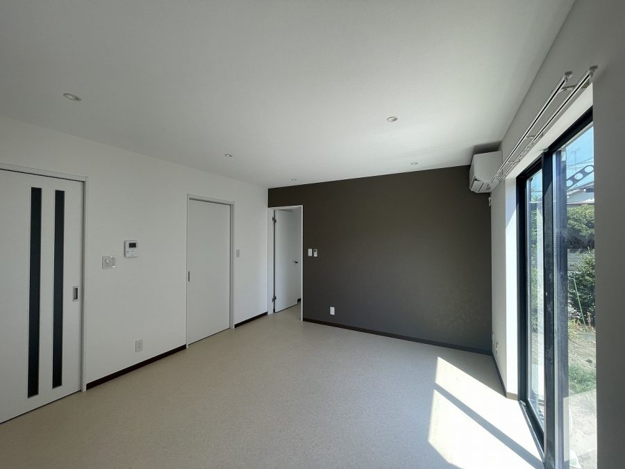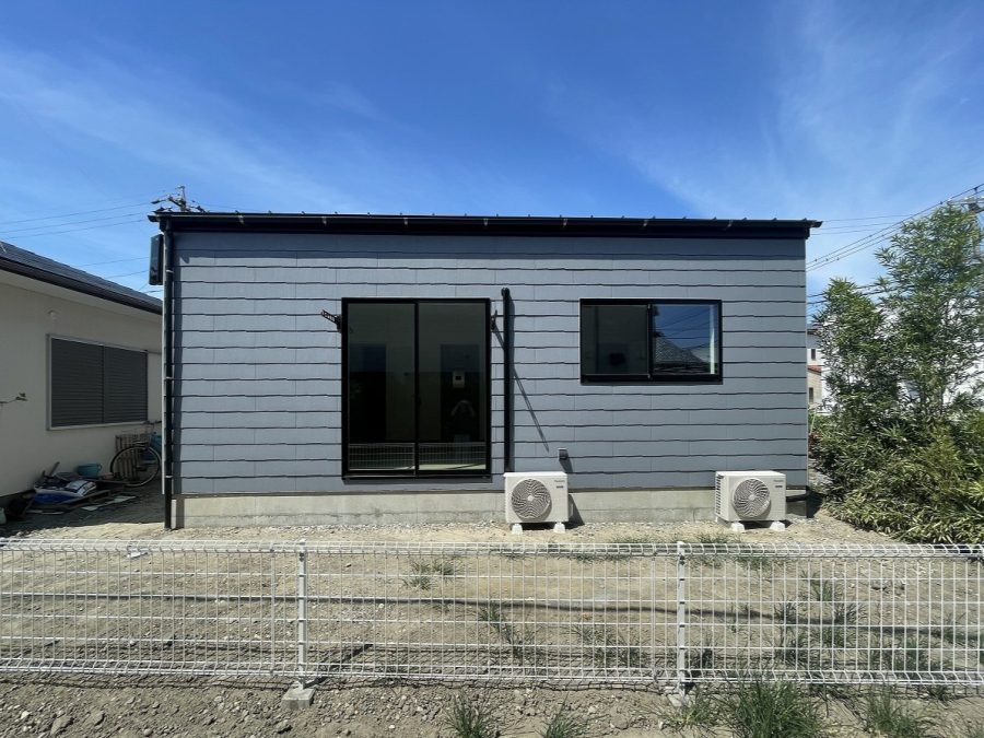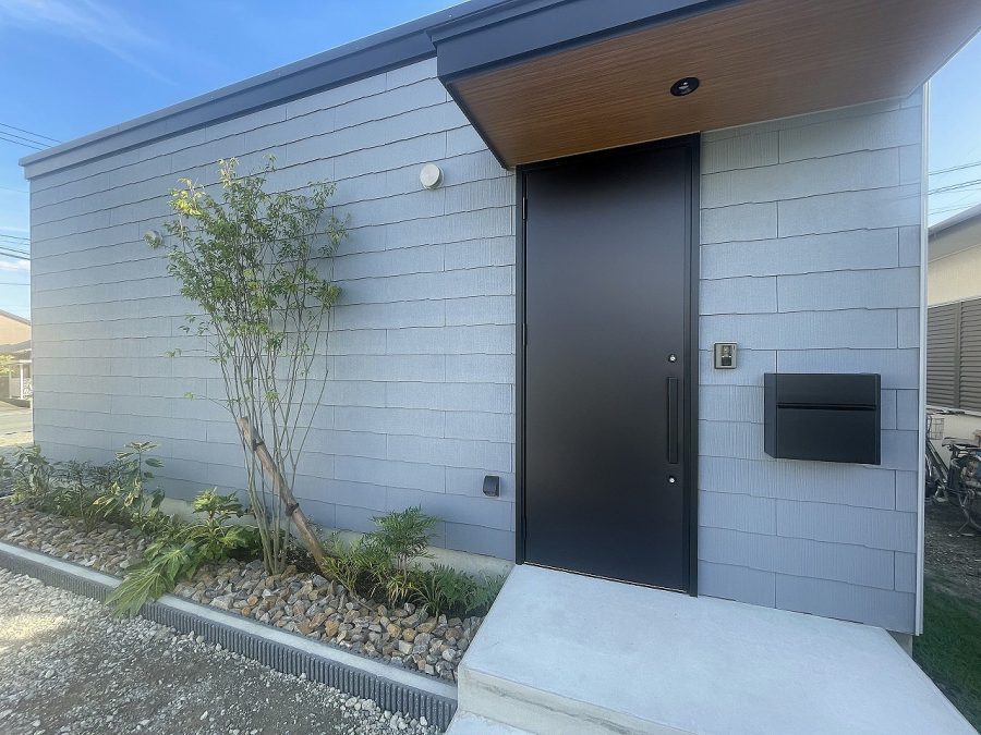 道路側の窓を無くして、庭側に窓を集中させることで、プライバシーと断熱性を両立しています。